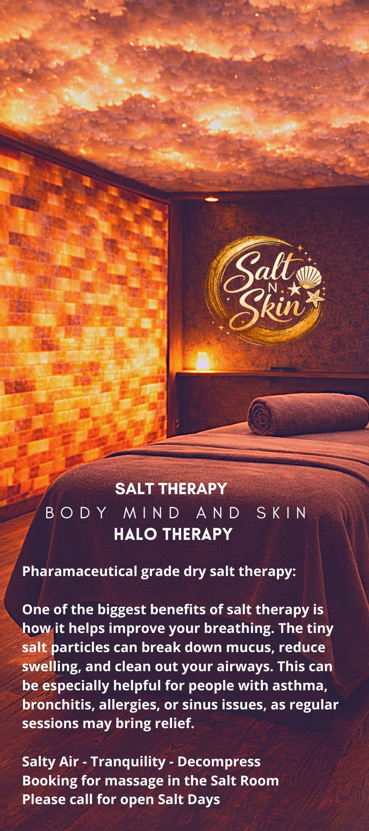 Coming soon: salt treatments, single sessions or monthly option. Salt massage options.